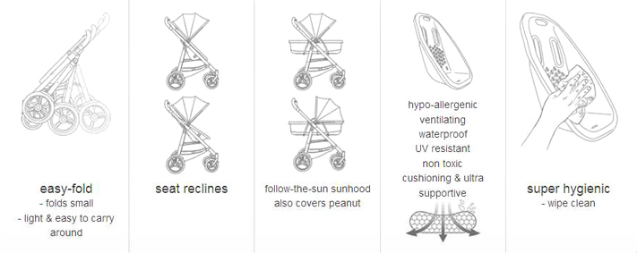 - Bassinet (peanut) compatible